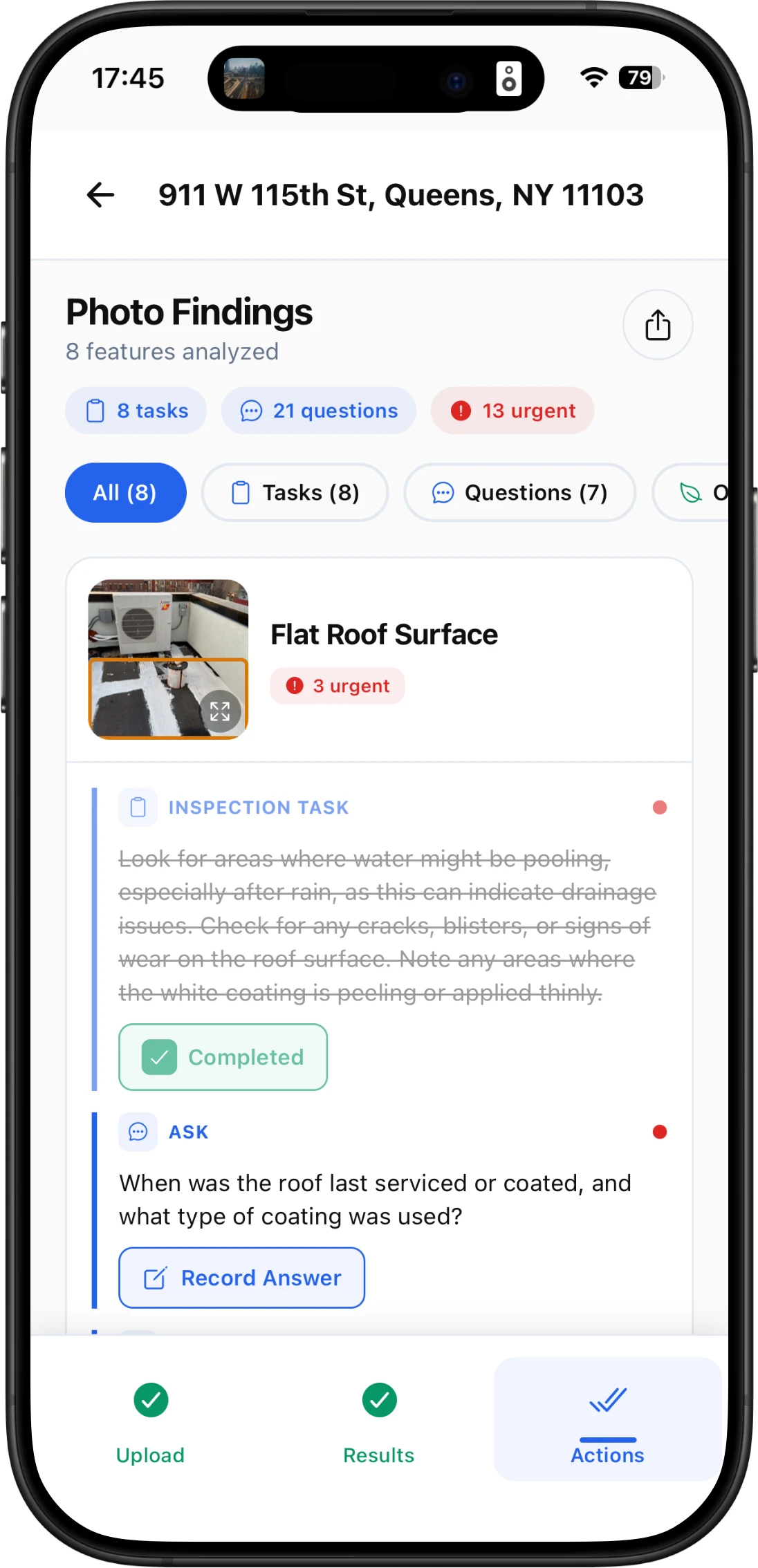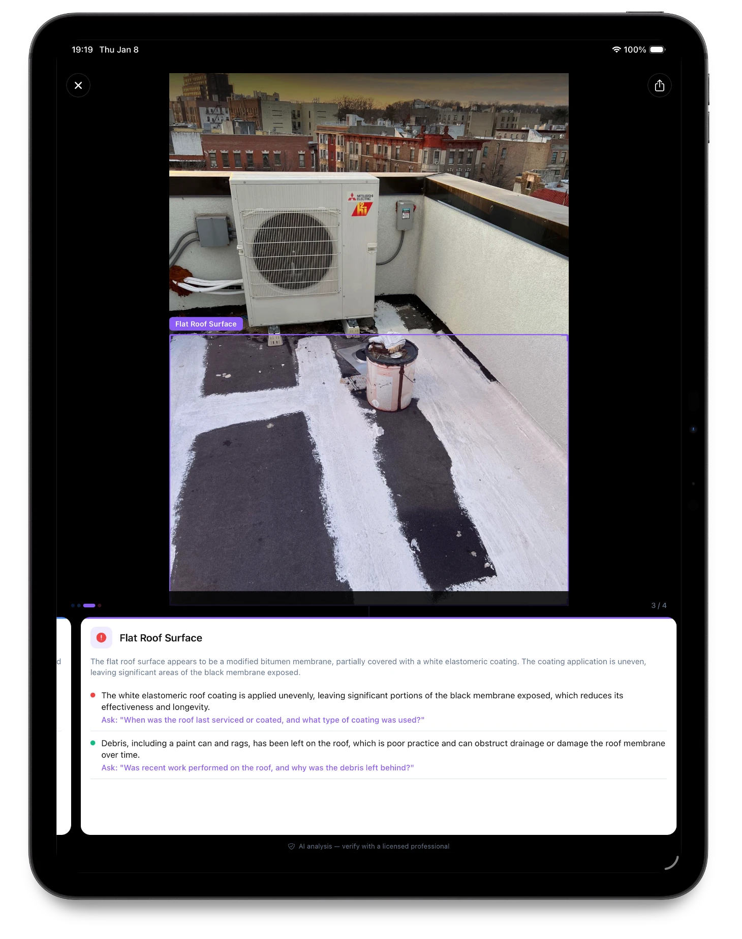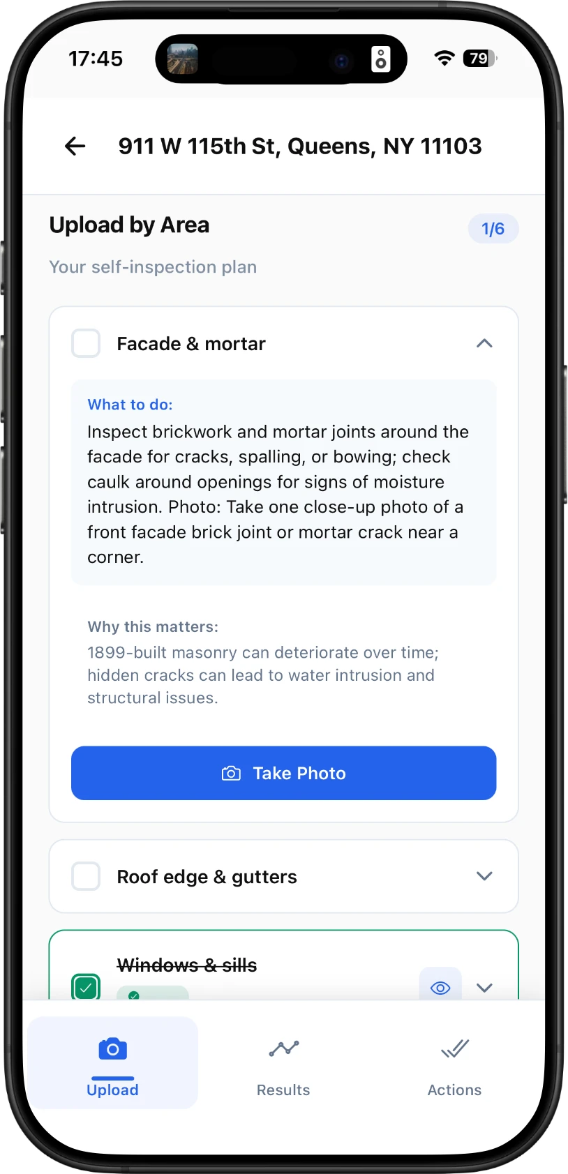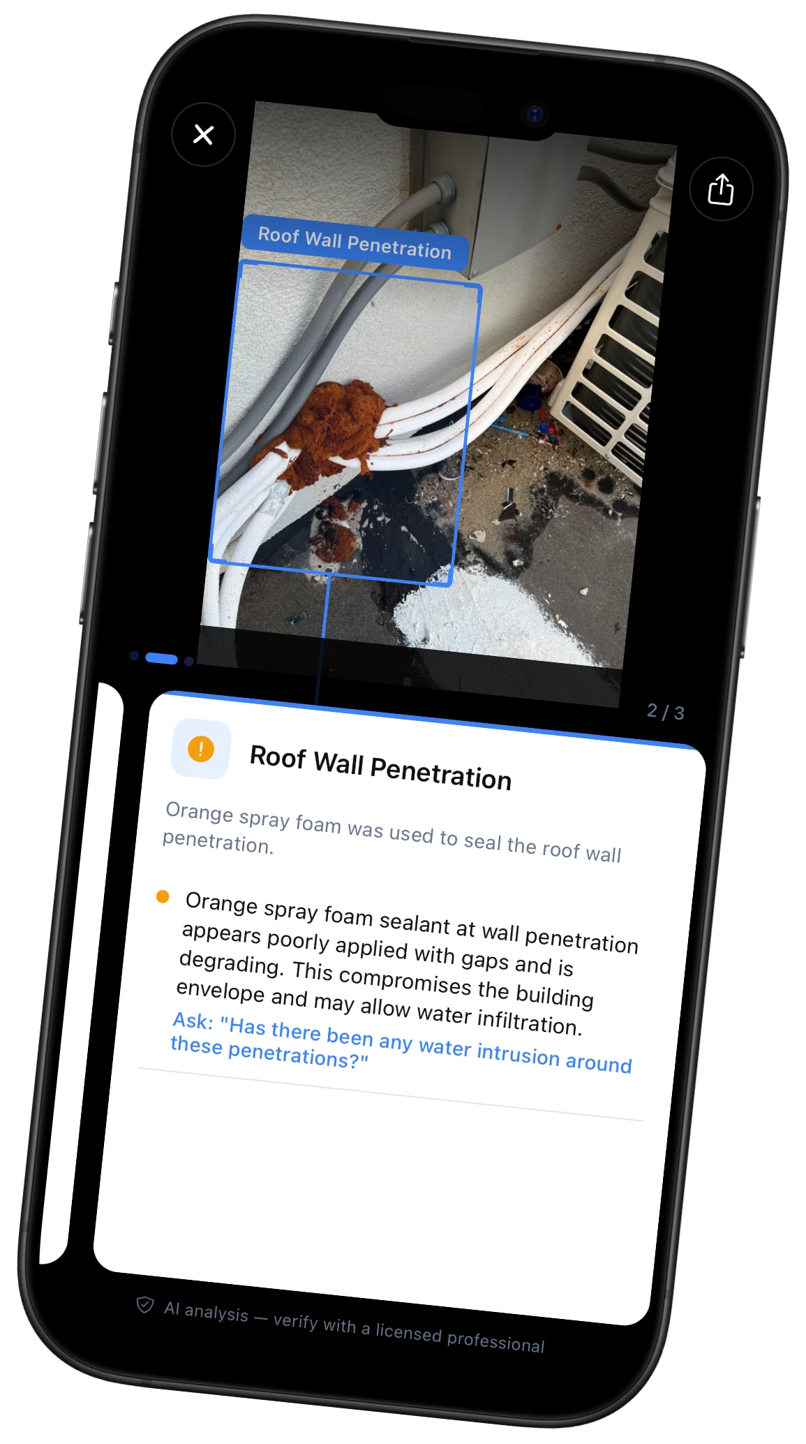 Our app guides you to potential high-risk areas for photo analysis from a listings URL. All before the official inspector shows up.